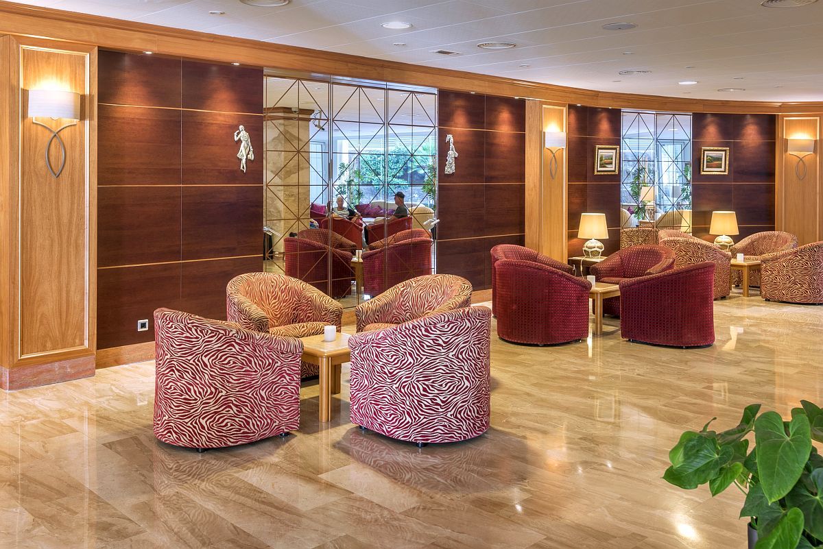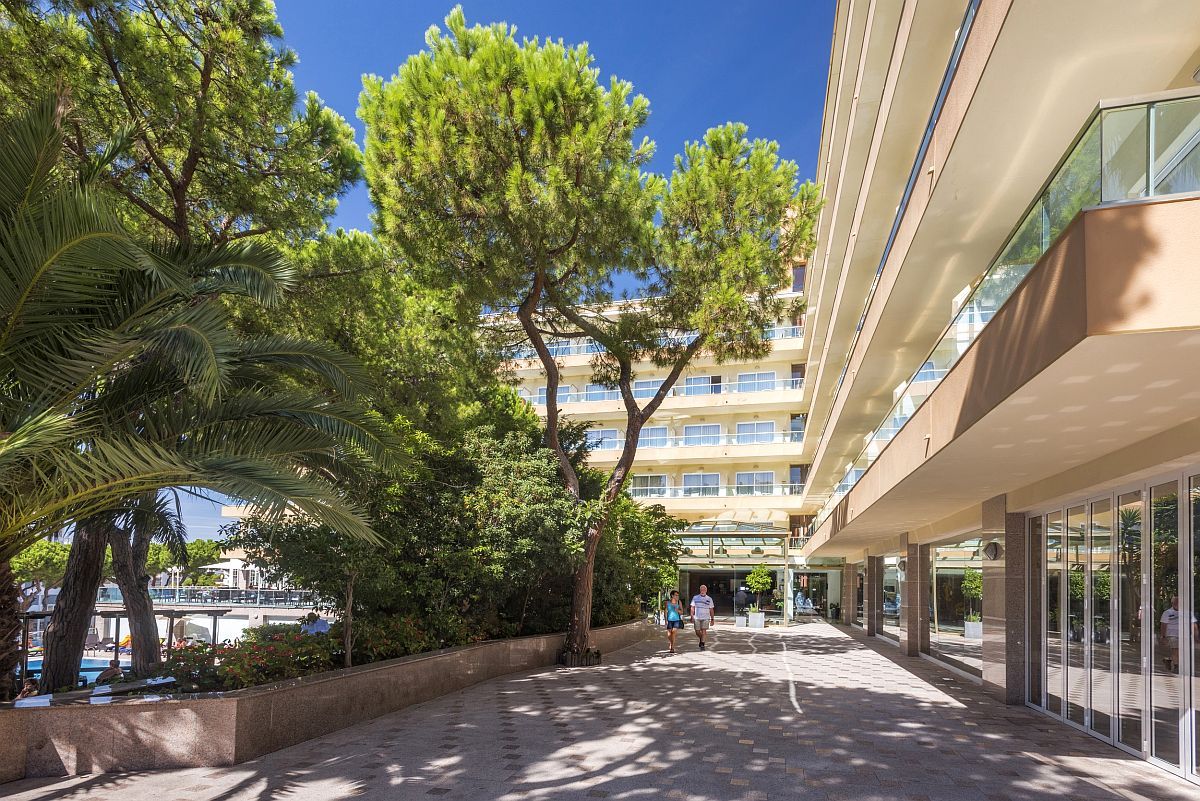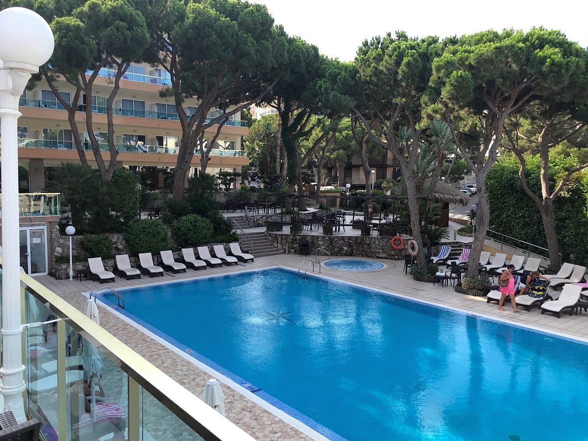 Das stilvolle Haus etwas abseits des Zentrums von Salou, aber dennoch nur 250 Meter vom Strand entfernt. Über eine Treppe geht es sogar noch etwas schneller bis unten an die Promenade, wo zahlreiche Bars und Restaurants zu finden sind. Das Hotel verfügt über rd. 200 Zimmer und ist damit eines der etwas kleineren Häuser in Salou. Neben dem Hauptpool, der in einem wunderschönen Gartenangelegt ist, gibt es noch einen seperaten Pool für Kleinkinder und ein paar Spielgeräte. Auf der anderen Hotelseite ist zusätzlich ein Pool "nur für Erwachsene", an dem es dann etwas ruhiger zugeht. Tagsüber gibt es eine Bar im Außenbereich und abends dann eine im Hauptgebäude. Abseits der Lobby wurde eine Bibliothek bzw. ein Leseraum eingerichtet. Die Poolblickzimmer haben auch einen eingeschränkten Meerblick, wenn Sie in einem der oberen Stockwerke wohnen, werden aber nicht als solche angeboten.