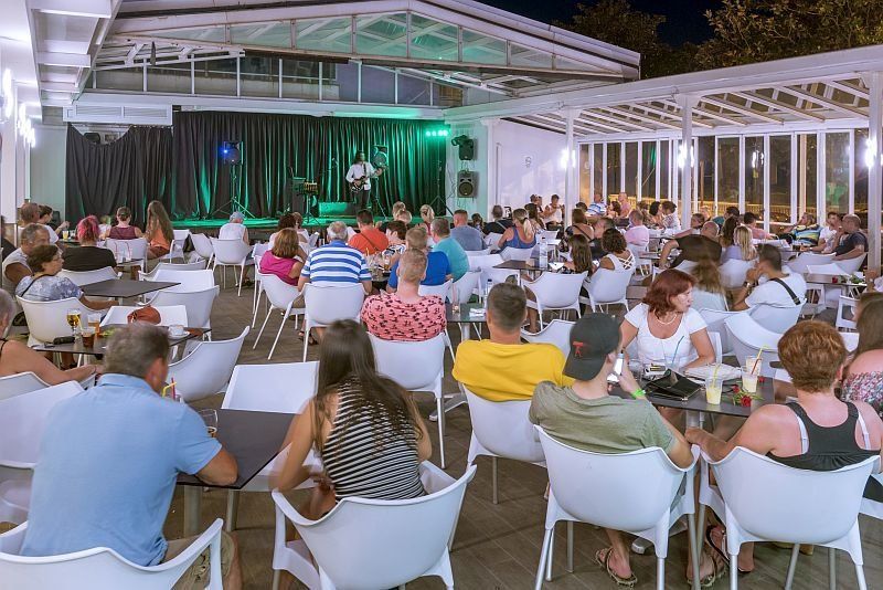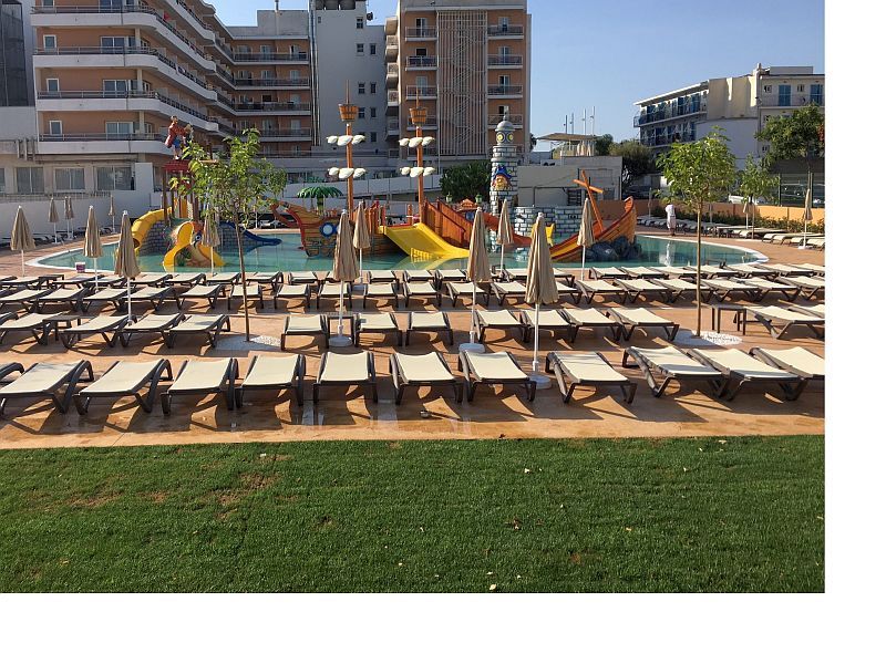 Das einladende Hotel liegt nur zwei Gehminuten vom Strand entfernt. Es wird lediglich von der Uferstraße und der Bahnlinie vom Strand getrennt. Das Ortszentrum mit seinen zahlreichen Bars, Restaurants und Geschäften erreicht man ebenfalls in nur wenigen Schritten. Das Hotel bietet einen Außenpool und ein separates Kinderbecken, die von einer sonnigen Terrasse mit Meerblick inklusive Poolbar umgeben sind. Allgemein hat man von jedem Punkt des Hotels entweder Meer- oder Poolblick. In der Hauptsaison gibt es tagsüber als auch abends an mehreren Tagen der Woche ein abwechslungsreiches Unterhaltungsprogramm. Zudem wird eine ausgezeichnete Kinderanimation mit Wasseraktivitäten und Zaubershows im Mini Club angeboten. In dem Aufenthaltsraum des Hotels können Sie außerdem Tischtennis, Billard, u.v.m. spielen.
